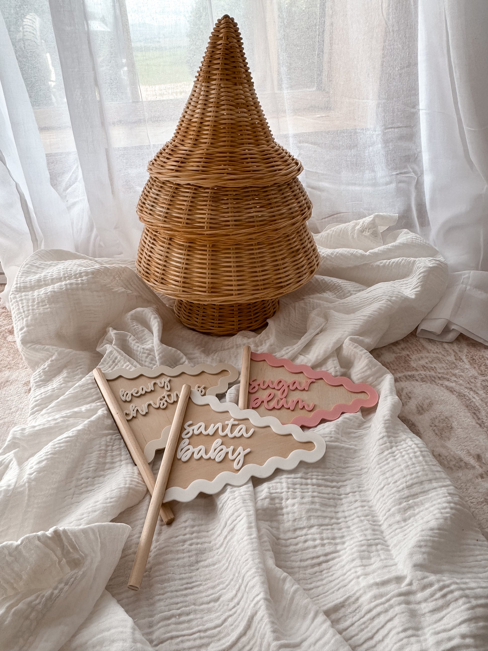 Add a sprinkle of festive fun with our Christmas word flags. Each flag features a sweet 1–2 word Christmas saying, making them perfect for styling bedrooms, play corners, or adding a whimsical touch to your holiday décor.