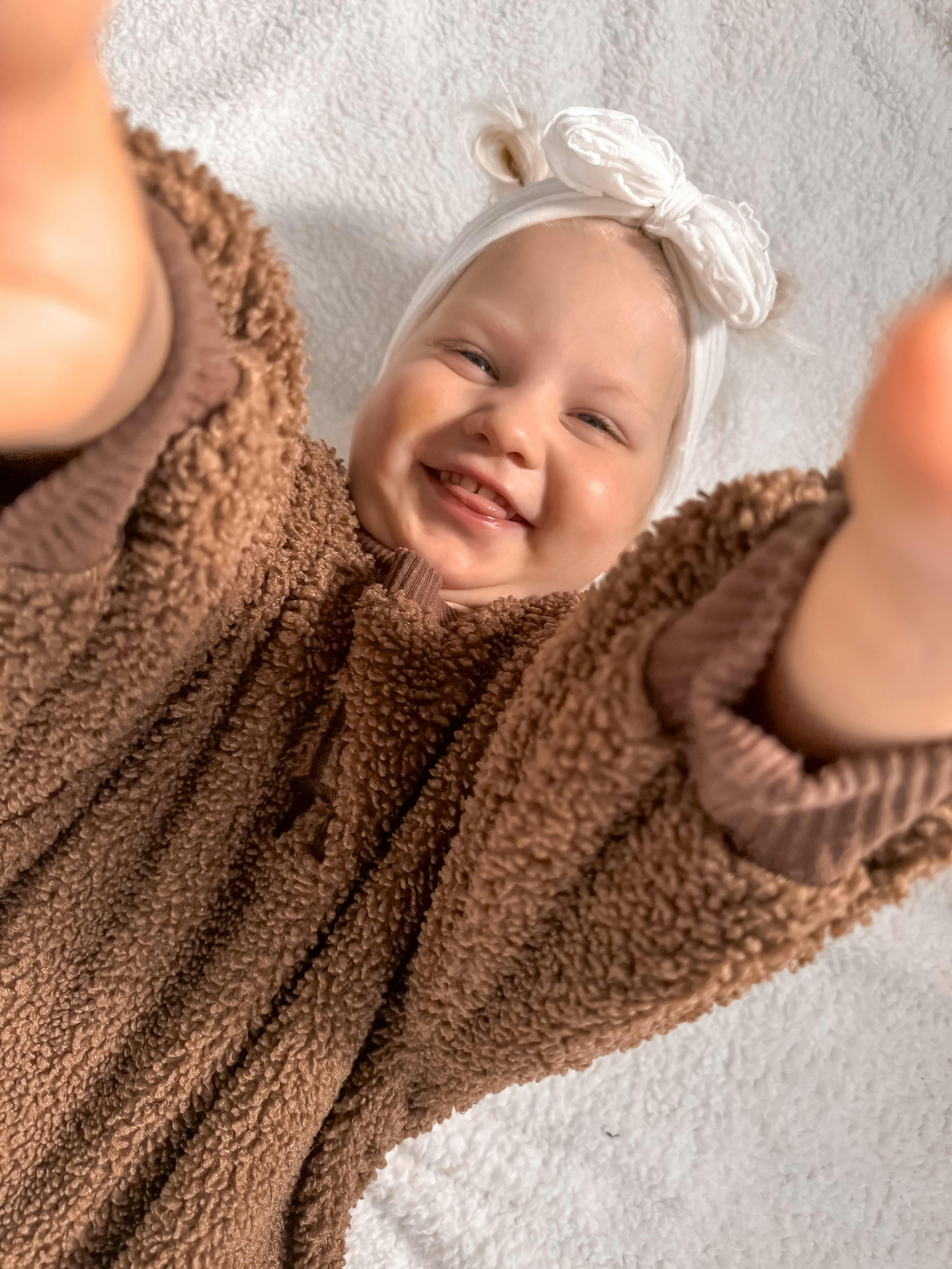 We love our lounge suit! It’s so cute and cuddly. We either dress it up or throw it over a onesie instead of a dressing gown.